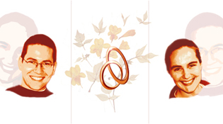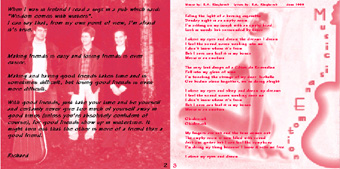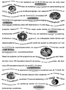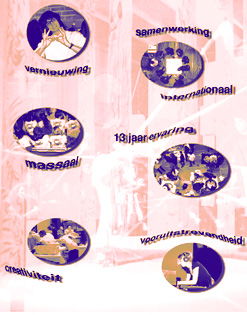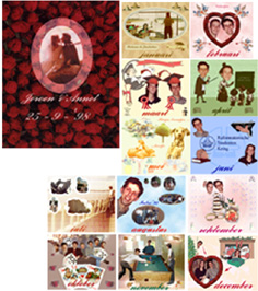 In august 2003 I got married. It was a very unique marriage because most of the things were self-made. So was our invitation card. I designed the card and I also printed and assembled it myself at home. The card could be folded in three parts. First the left "wing" folded to the centre and then the right "wing". When the card is closed, it looks like an old folded letter. The back was made out of two letters. One from me to Erwin, and one from him to me. (Erwin and I always wrote letters when we lived far away from each other.) The two letters merge into one another at the centre of the image. When the card is open, our pictures are shown and they "hold" a separate transparant sheet, which contains the text of the invitation. |