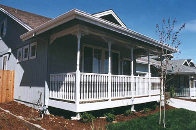 Neighborhoods like this look desolate and can even become victim of crime. There is a need for cosier neghborhoods where the feel of community and mutual social protection is stronger and the face of such a neighborhood must contribute to that. Garages set back and inviting entrances and porches in front give a stranger the feeling of being welcome ruther than being an alien. People need friendly looking neighborhoods where the car’s only place is the parking place and where space is used not only for living and privacy, but also for other activites of the community, such as safe play of the children. Integration of functions must prevail for a better environment for living. Architects can play an imperative role in protecting the quality of life by designing friendly looking neighborhoods and Ms. Austin has devoted her career to this goal.